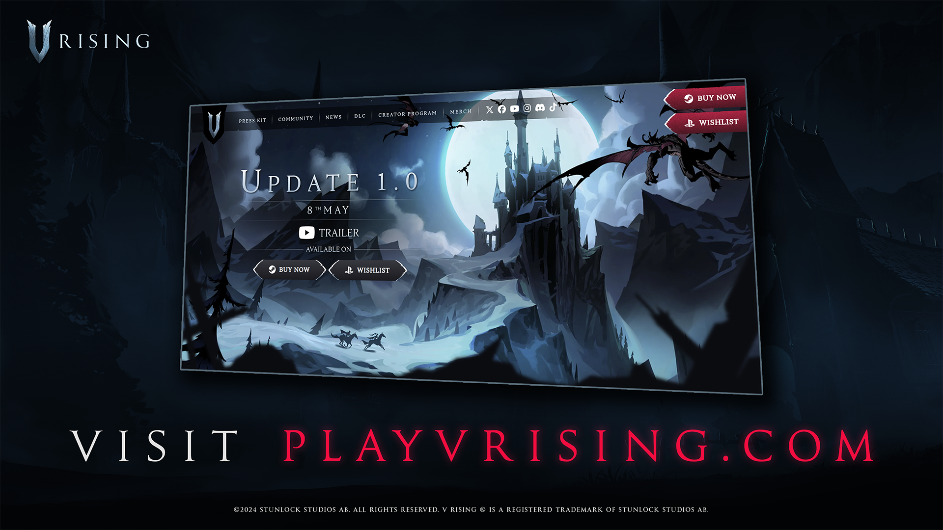 To keep up with everything going on with the launch of V Rising, keep an eye on our socials. There’s a lot of information coming out, so this is your best chance to keep up.
