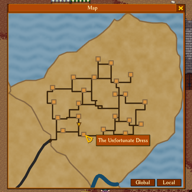 The map is now interactive, you can click on the regions to see details. You can also click on the "Local" button to see the current part of the world your character is in. If you are inside a building or a dungeon, it shows the map of the structure. Very useful if you are lost in a cave!
