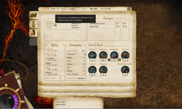 - Passenger destinations are now generated correctly in new games (thanks for catching and reporting this!)! Old saves remain bugged. - New Day save now works after combat encounters in the Fighting Pit event - Cargo slot changes are now applied immediately - Fixed tutorial pins for closing the Journal and the Codex - Fixed a bug causing Companion conversation portraits to be empty - Healing companions no longer triggers the incorrect Event result text - Fixed the Journal entry order for The Black Knight chapter V, Eliminating the Abolitionist Camps - Clicking on the Journal or Codex during "Hold space..." tutorial/narration is up now does not open them