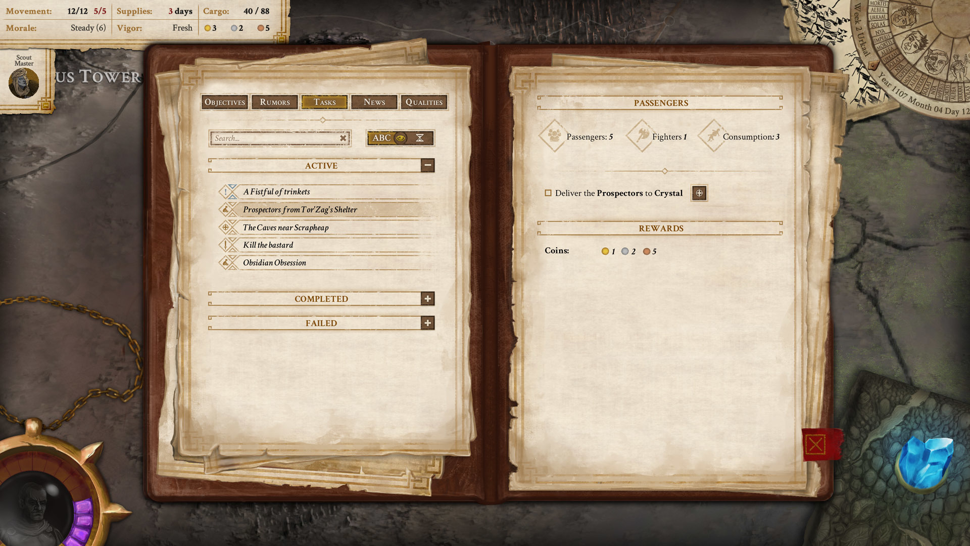 Those who that do undertake journeys often pay comitati such as yours to take them where they want to be. In-game, this provides an optional source of revenue to help you keep afloat but one that requires you to plan your path ahead considering several factors, including where your passengers wish to go and how long you have to deliver them there.