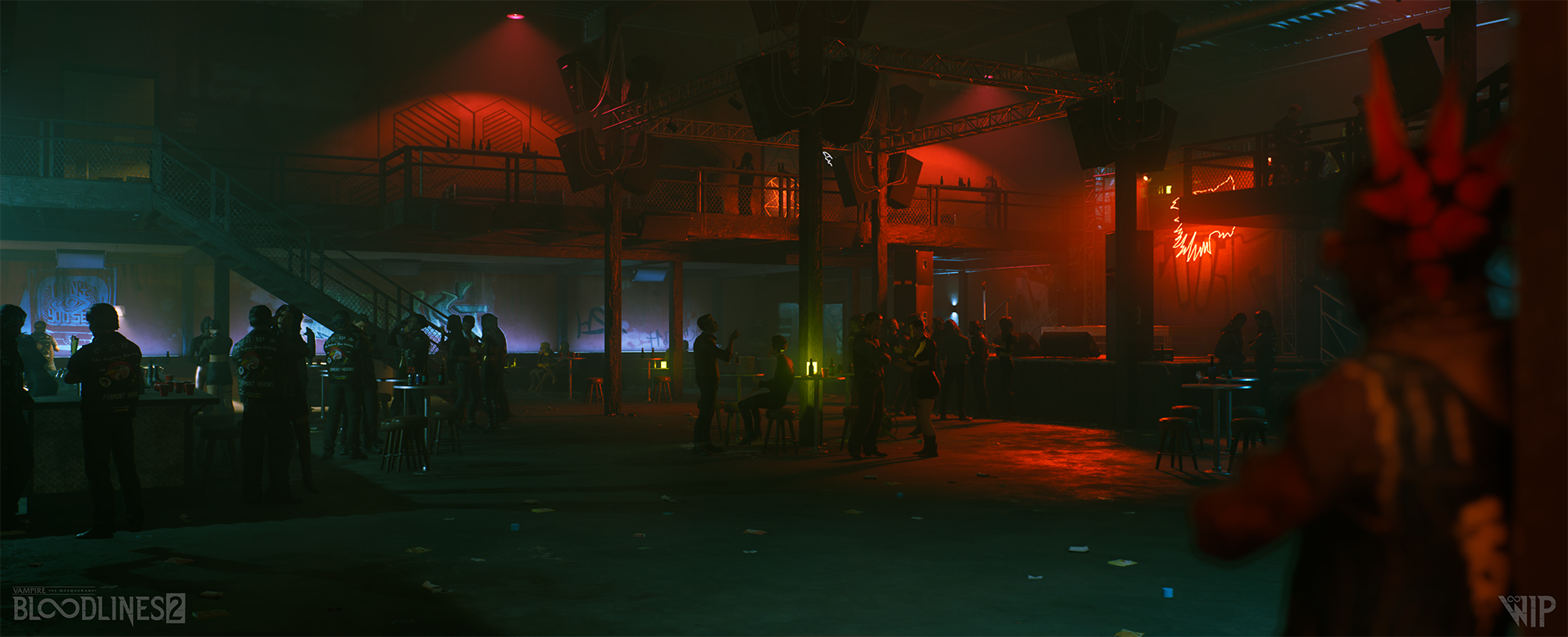 Summer’s here so we figured it’d be a good time to pull back the curtain a bit and show you how a game like Vampire: The Masquerade – Bloodlines 2 is made. This month we’ll give you a couple of glimpses into how the magic becomes a game. In this post we’re focusing on the atmosphere of the game: Concept Art, Level Design, Lighting and Audio.