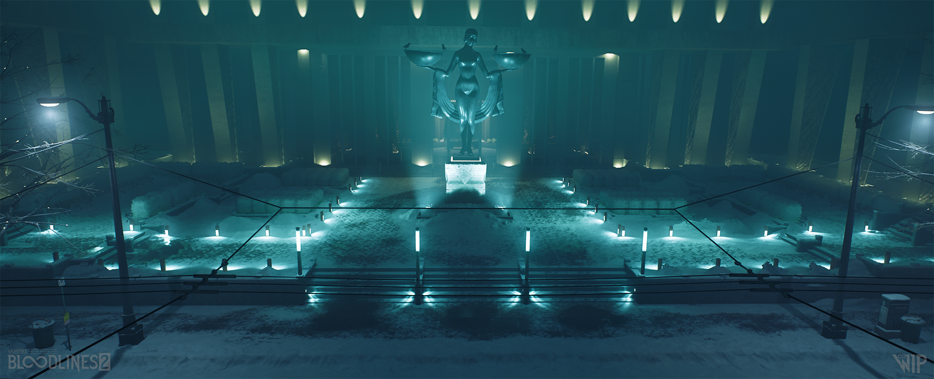 The original Bloodlines is iconic for its atmosphere and sense of nostalgia, in part due to how it aptly captured the cultures and attitudes felt at the turn of the millennium. With Bloodlines 2 we wanted our atmosphere to resonate through the same blood-soaked spectacles, but to show the world as it is now. These nights, many cities have undergone what would look from the outside like a glow-up. Things are shiny and new, flawless, stripped of anything that might bely their history and heritage. Not because we ourselves are flawless, but because we've become better at hiding our monstrosity. But the brighter the light, the darker the shadow. And the more vibrant that light, the more pressing the darkness that seeks to swallow it.