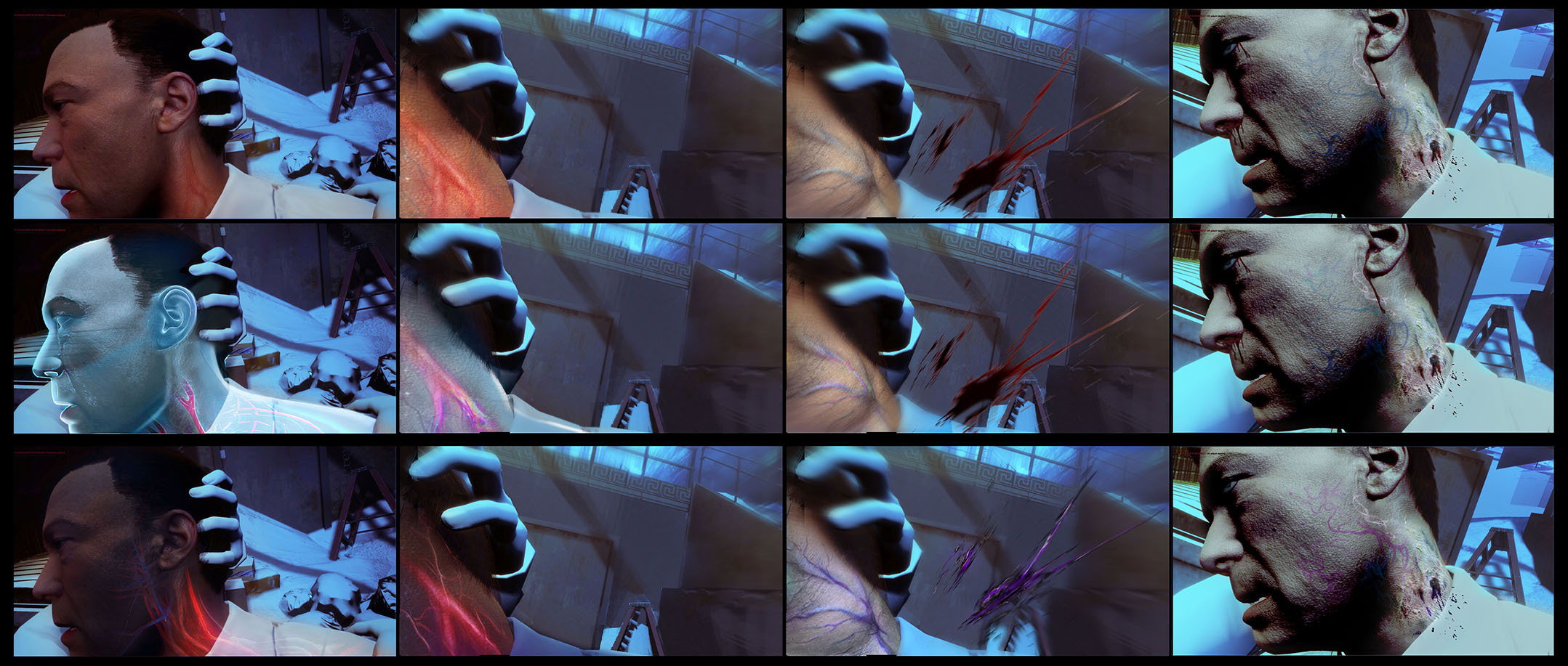 We wanted the action of feeding to reflect the visceral nature of stealing life from a beating heart, taking life from a host, and transferring it to the player. Above we explored a few ways we could show this through the reaction to Phyre’s vision as the blood enters her system. This level of exploration, creating many different ideas and iterations, is key when we’re trying to find something that could work for a feature like this. - Senior Concept Artist, Jordan Grimmer and Lead Concept Artist, Michele Nucera