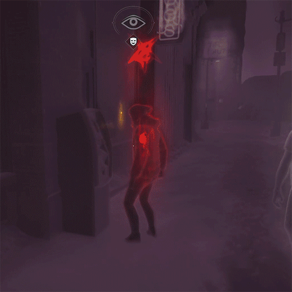 When it came to concepting the visual style of this feature, we needed to consider a few different factors. Firstly, the level of danger a person has in relation to Phyre. Are they unaware of your presence? Are they actively searching for a threat, or are they just a bit agitated or worried after they’ve caught a glimpse of you in the shadows? Additionally, we wanted to visualise a way to show the types of emotions that enemies and the public are feeling too, are they angry? Lustful? Fearful? These types of blood resonance may just come in handy while exploring Seattle.