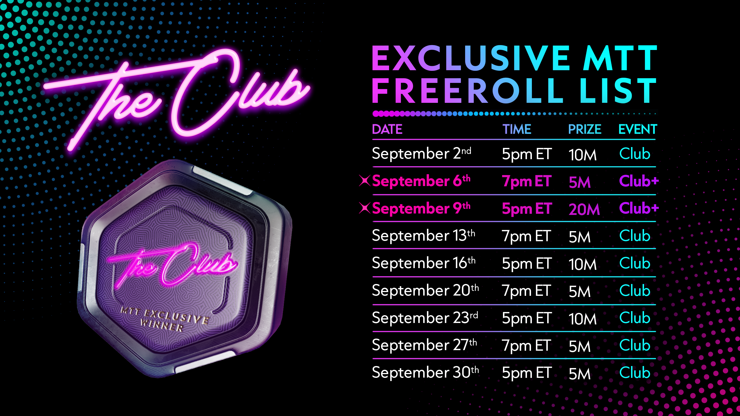 September’s Club MTT Lineup!