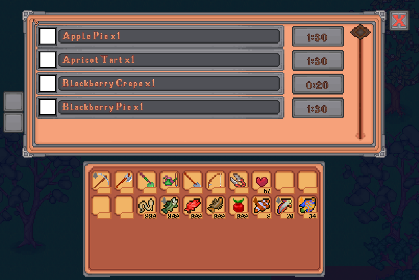 Stuff like that. I think it might help to keep the player as more of a supplier rather than a guy who owns a farm, who also smiths, tailors, makes jewelry, raises bees, fights monsters, etc, etc. Since this game doesn't really automate away a ton of tasks, keeping the list of things you can do manageable might be the better route. That way you don't end up just running around your farm clicking on each and every thing you walk by to collect and item or start a new task.