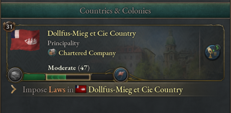 [p]Give your companies a Colonization Charter and profit from colonization bonuses and see the company become a country this way.[/p]