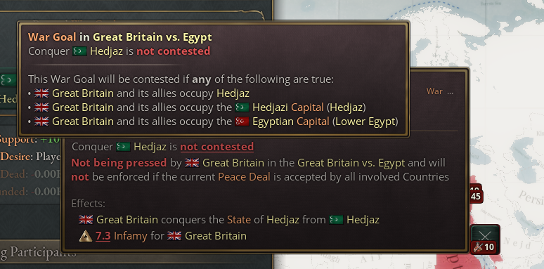 In 1.9, as part of the free update, we’re adding a new war goal: Enforce Treaty Article. This war goal lets you select between a number of articles that are specifically classified (in script) as enforceable. You can select this war goal multiple times targeting different articles. Then, at the end of the war, all instances of the war goal against the same country will result in a War Reparations Treaty against that country. This treaty, being enforced, cannot be withdrawn from.