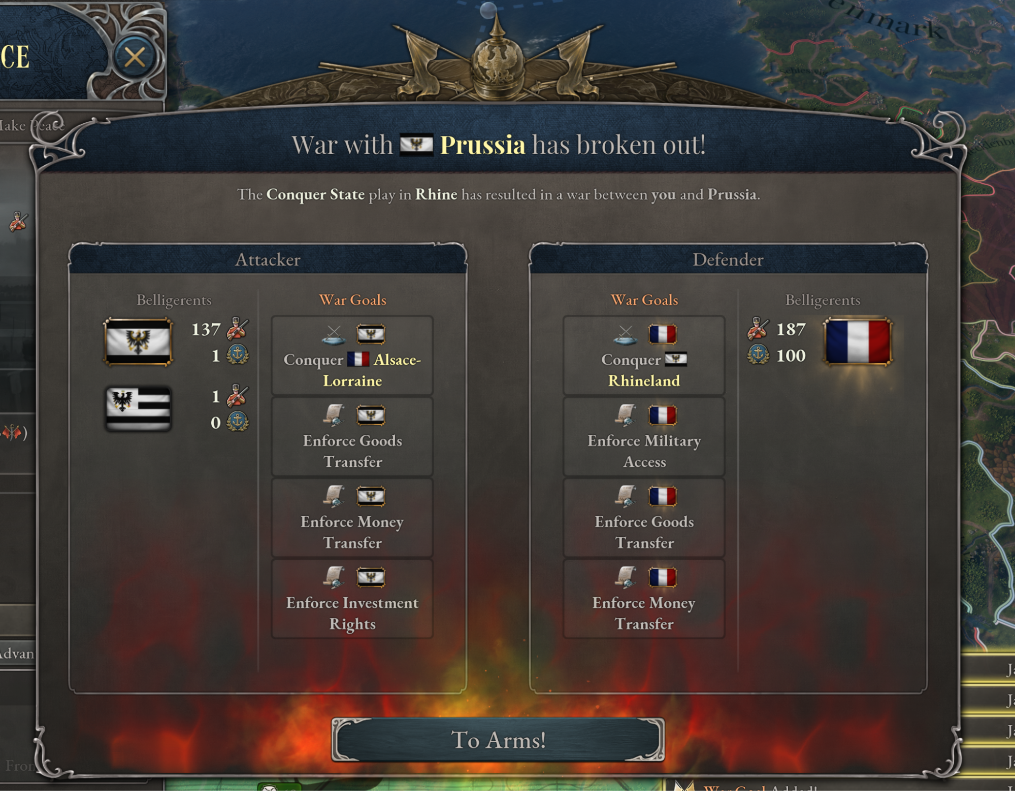 Note the extra options for states Champagne and Lorraine which are accessible through the military access to Belgium.