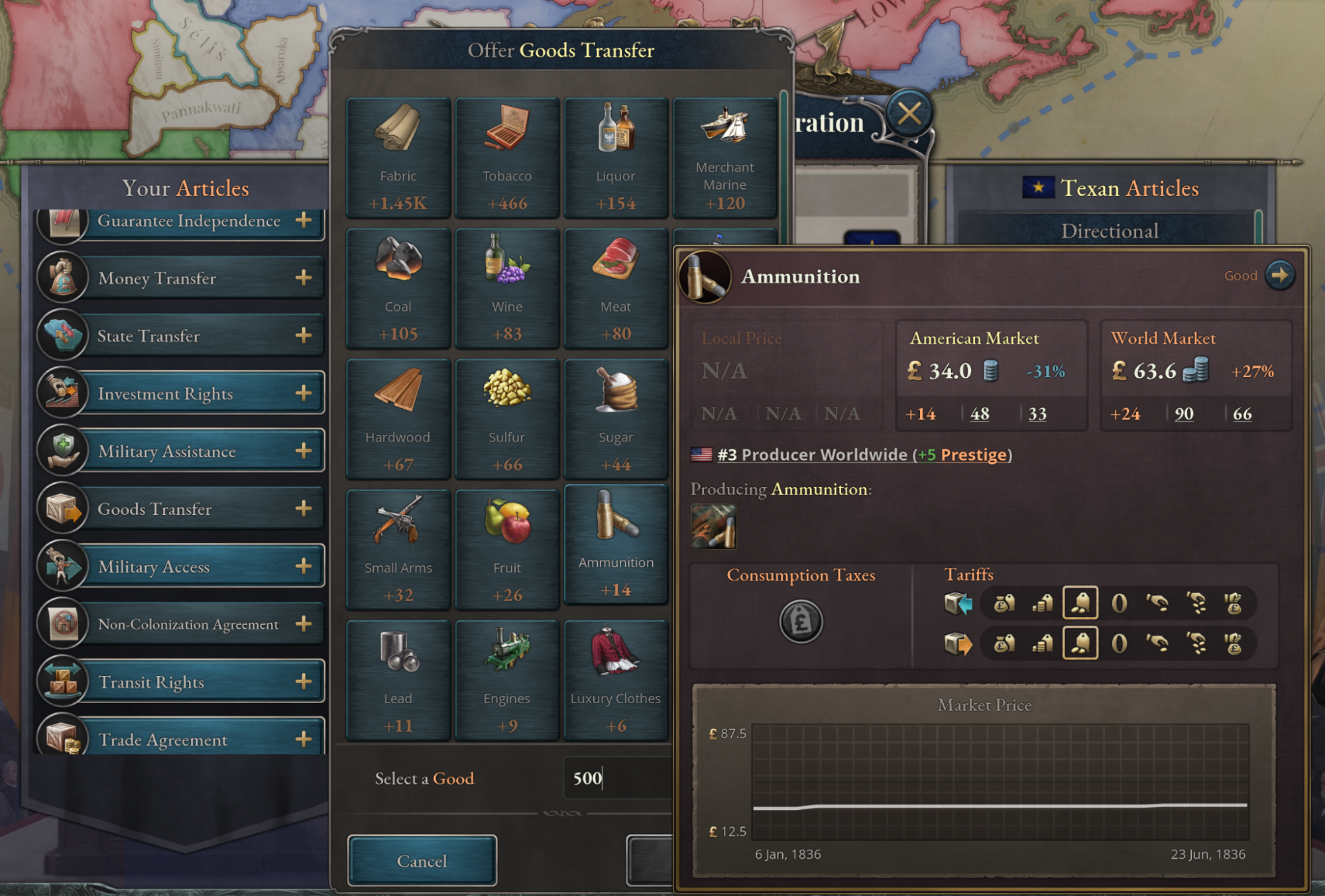 What this means is that on a base level you can have war reparations work as they used to, but if you prefer, as part of war reparations you can instead demand getting investment rights in the country in question. Or you can prohibit them from trading weapons and artillery with the world market. Or you could mod some other article we haven’t thought about and do that instead. Or all of the above.