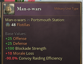 [p]Added a new 'Blockade' order to Admirals which makes them Blockade any hostile ports connected to the Sea Node they are present in. Blockades reduce World Market Access, Shipping Lane Efficiency and throughput of buildings in the Port hub at a rate depending on the Blockade Strength of the blockading fleet. We also added blockade multiplier effects to two existing admiral traits.[/p]