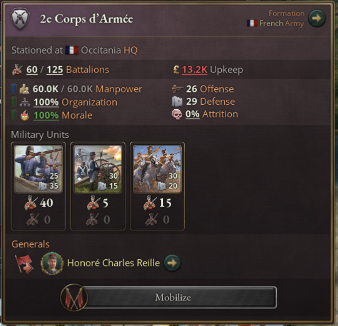What we’re doing now instead is making organization a drifting value, meaning that when an important commander dies, the target is set to say 40 but it will take a while to go down from 100. Enough time for you to hire or promote a new general in their place.