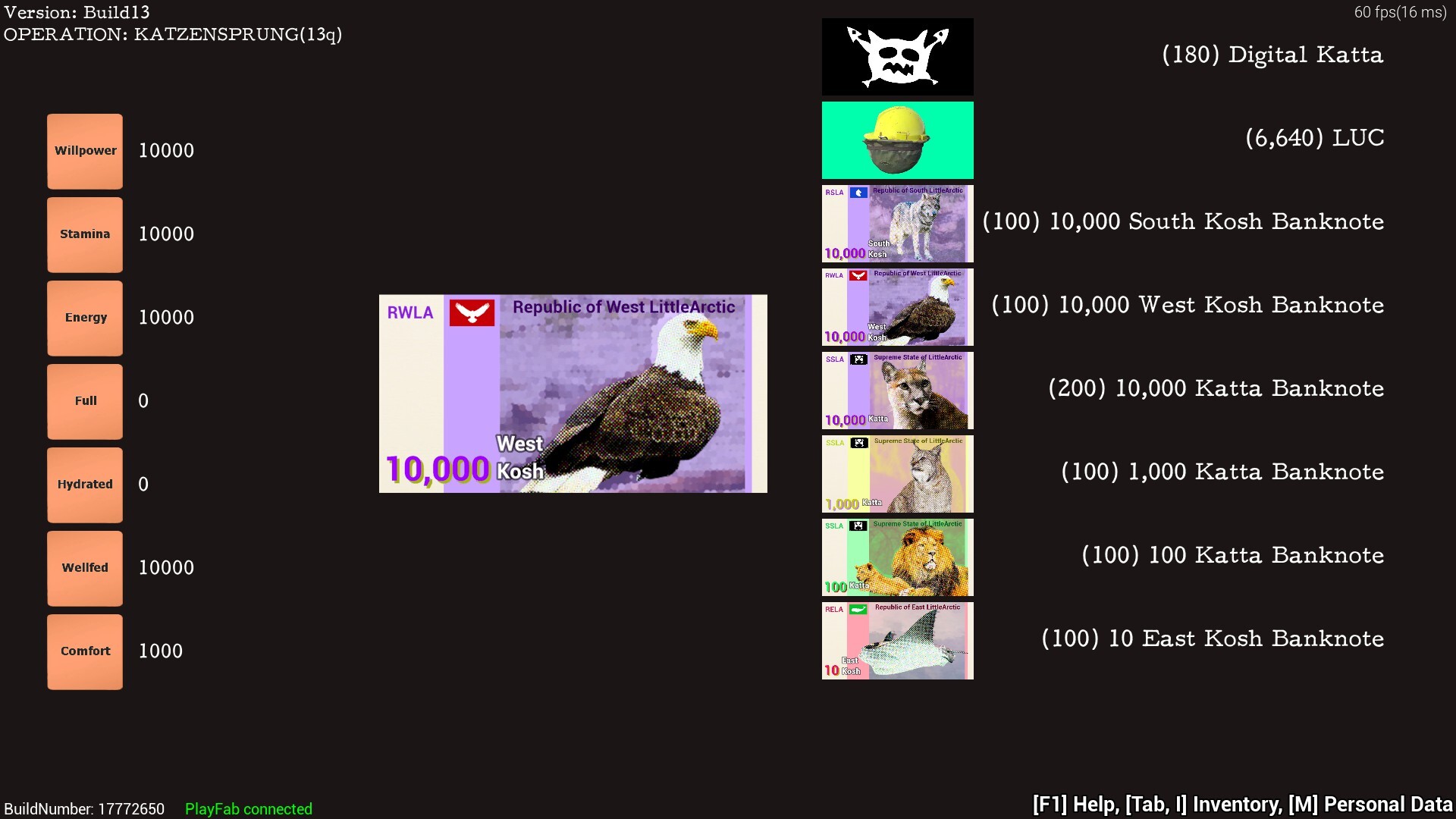 Now your character will be saved every 1 minute. If the server is closed and re-opened, your Inventory and Bank Account will be the same as the last save. The worst case is that it rolled back 1 minute at most. You can carry your wealth across updates given that the savegame is not broken or deleted.