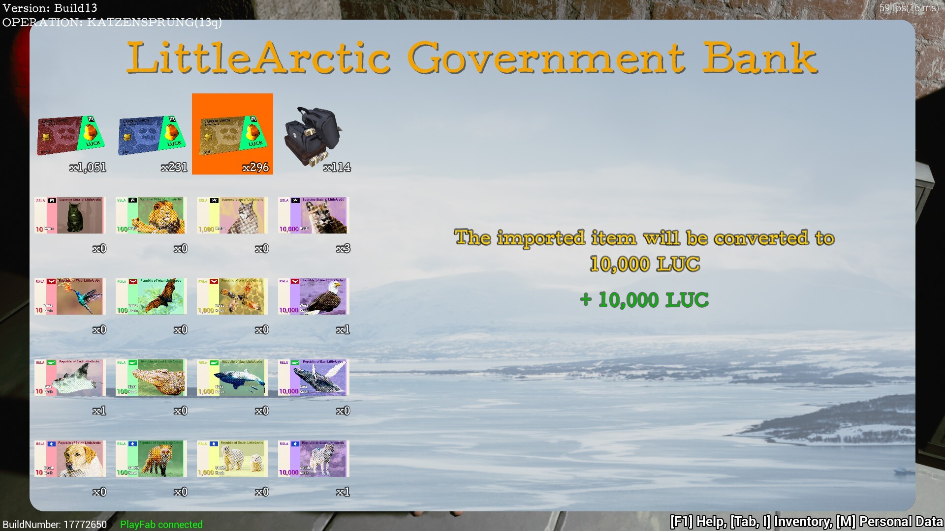 These banking functionalities are the foundation of the LittleArctic Economy. So I chose to implement them early, even though there are not many items to buy yet.