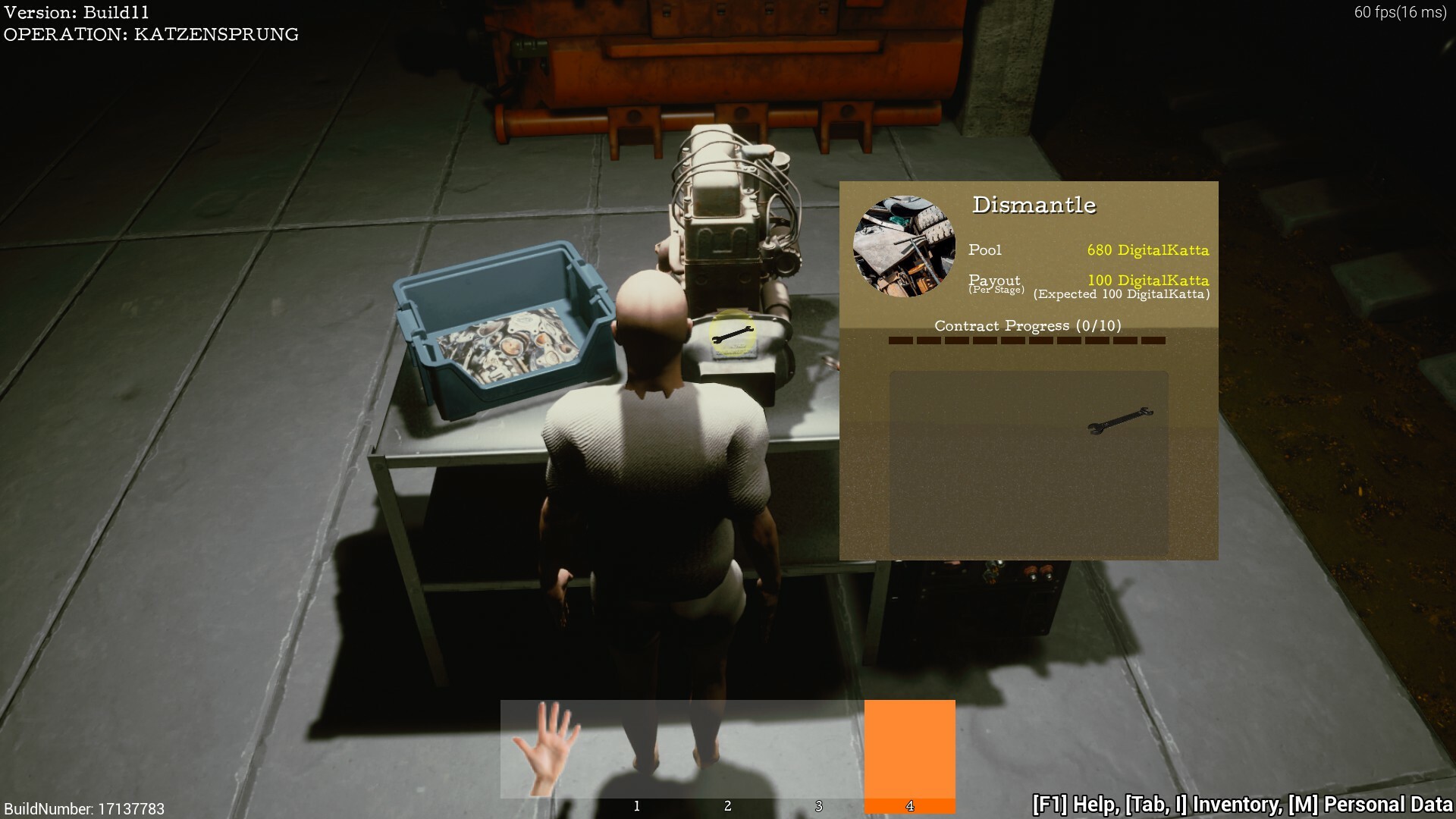 For now, the job is simple. You just walk close to the disassembly table and you automatically disassemble the machine for the parts. You will be paid and then you can buy either Hardhat, Factory Jumpsuit or even "The Welcome Box".