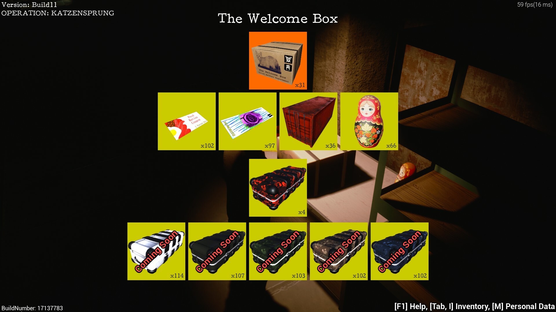 "The Welcome Box" is available at 3,000 Katta. You can send it to your Steam Inventory but you cannot open it yet until the next update.