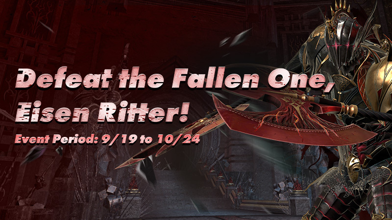 Event Period: 9/19 (Tuesday) after weekly maintenance - 10/24 (Tuesday) before weekly maintenance. There are many friends within Vindictus that can accompany your character. Comrades, pets... and don't forget the animals all around town! πΆπ΄π·π£π’ Take a photo with your best friend, and please share it with us!Click HERE for more details! [EVENT] Defeat the Fallen One, Eisen Ritter! September 19, 2023