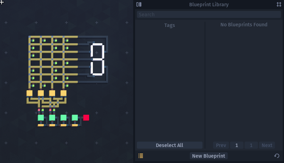 I would like to begin by announcing that the long awaited and highly requested Blueprint Library is now live in the beta branch! With this feature, it is finally possible to conveniently build an easily accessible collection of your circuits, complete with titles, descriptions, and tags. If you are not familiar with the beta branch, you can read more about it in this topic.