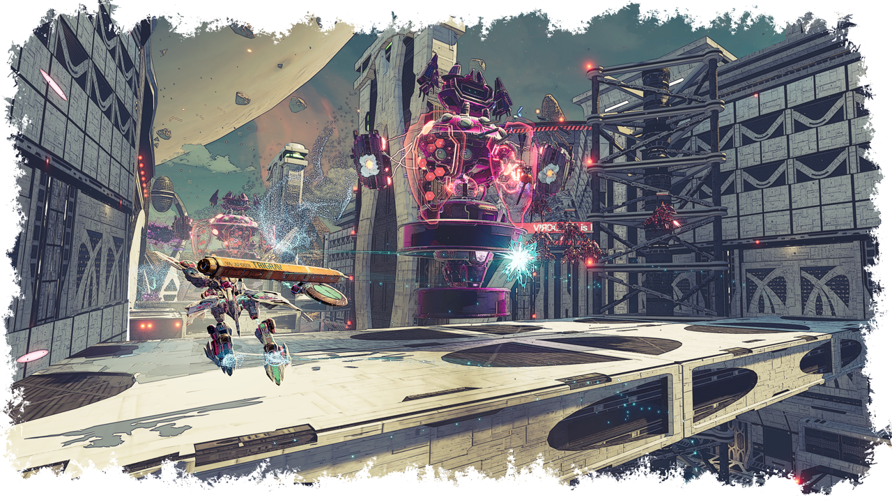 During the arguing back and forth with the central government on Jupiterium’s home planet, Jupiter’s largest satellite Io, a huge armed battalion enveloped in a mysterious black light emerged from the cracks and began to destroy every facility in the battle territory on Callisto.