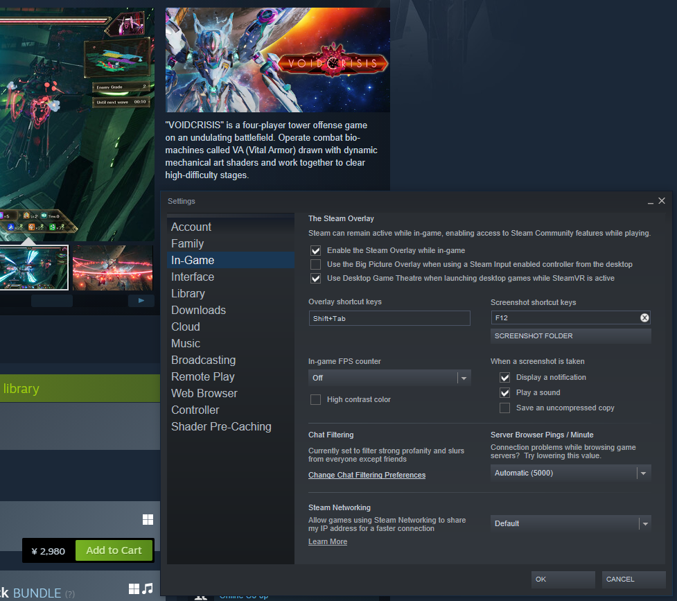 ・Setting content Steam>Settings>In-game> The Steam Overlay