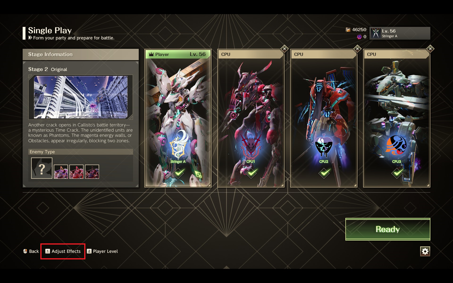Players in difficulty 「VOID」rank, can confirm the obtained Adjust Effects by pressing「1」「□」in "team organization" interface, as well as adjusting body coordination for reference.
