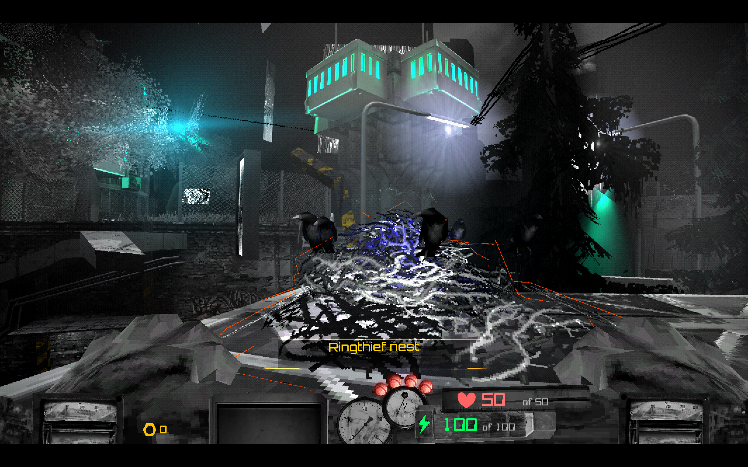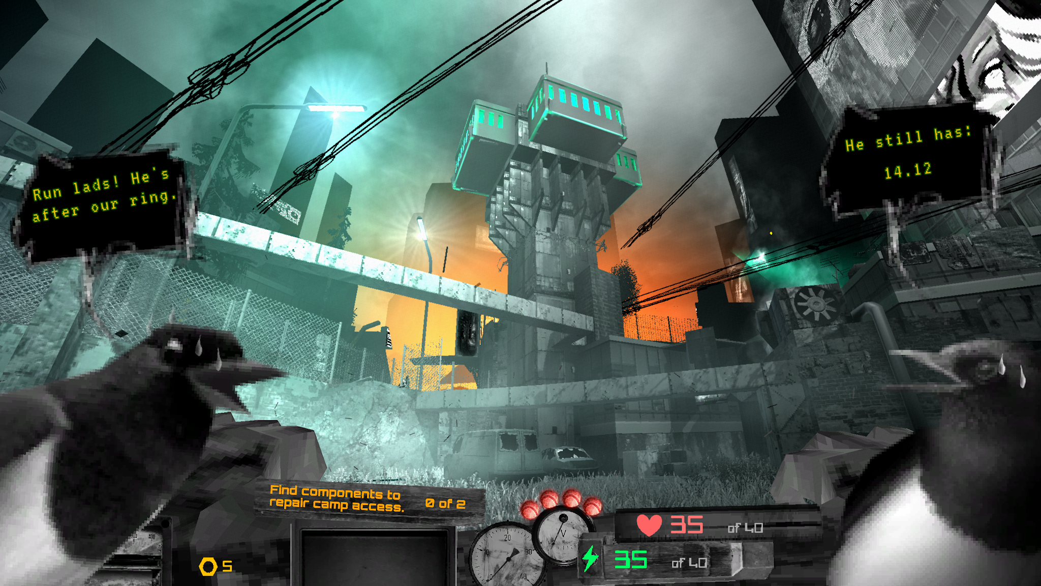 The next area (prisoner camp / a cyberpunk gangland) is about 90% done. Most of the time has gone into churning thru the audiovisual stuff and actual level design -- to tell the truth, since we wanted to offer some contrast to the previous work, it overscoped a little. But now its very much there, and we´re just going thru connecting areas, finishing up with interactions, fixing bugs, and wrapping up.