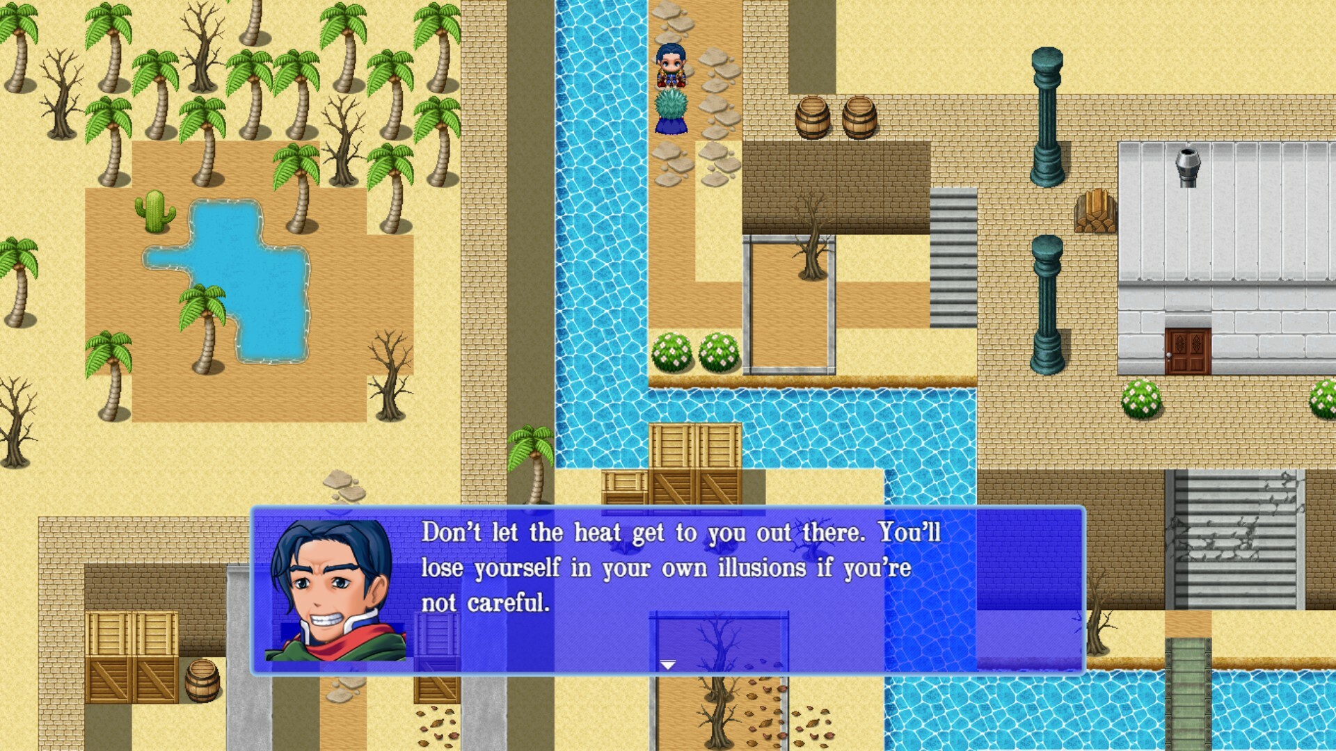 Version 0.295 The Lost Update --Added content to Inn events. Innkeepers now have a wake-up comment, and you must leave the Inn to sleep there again. --Added content in Demeter Cave. Item Vendor now offers items in the cave. --Added content to Pyramid of Anu. --Slightly decreased enemy appearance frequency on most maps. --Optimized BGM volume at pianos, which was previously too quiet. --Optimized PC Scrall's dialogue at game opening. --Optimized world map for traversibility and function. --Optimized treasure chest locations in Moyra. --Optimized map in Moyra for aesthetics. --Optimized event choreography and dialogue for PC Sita's introductory event sequence. --Optimized optional event dialogue ifor PC Sita n Hermes' Bay. --Optimized event dialogue at Appolla Castle arrival event in Chapter One. --Optimized NPC dialogue in Appolla Castle Courtyard. --Optimized event choreography for Queen Bhumi during the Tofla Regent's appearance. --Optimized treasure chest contents in Demeter Cave. --Optimized Inn event dialogue. --Changed Capua Fighter's Guild tutorial area's bookshelf to reflect updated information. --Optimized treasure chest contents in Kakkar Wastes. --Optimized event dialogue and choreography at Kakkar Wastes major event. --Optimized event dialogue during Temple of Kalika event section. --Optimized treasure locations in Agghora. --Optimized mini-event dialogue in Agghora for PC Samara. --Optimized title of child's book in Agghora house. --Optimized piano event in Agghora to be startable from any player direction. --Optimized event choreography and dialogue in Agghora. --Fixed a bug that would give you no item when getting a certain treasure chest item in Kakkar Wastes. --Fixed a bug that would not allow you to pass through a passable area in Appolla Castle Barracks. --Fixed a bug that allowed you to travel to impassable areas at Demeter Cave outdoor entrance area.