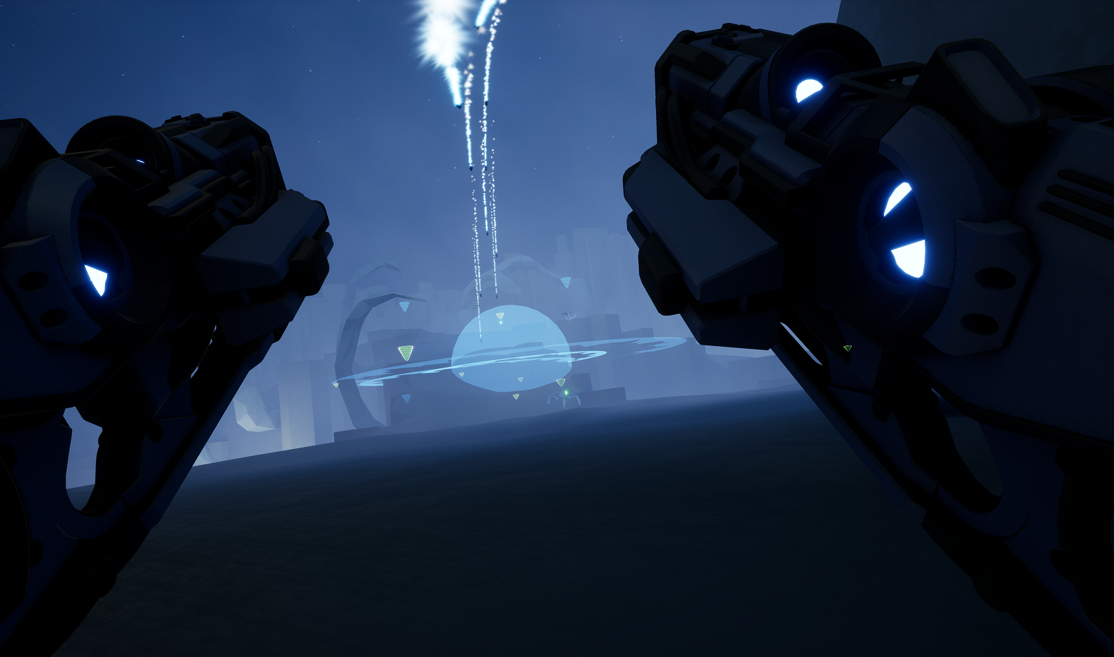 Eventually we decided to attach the rotation to the guns, so you still have the chance to look around and see the mech arms around you.