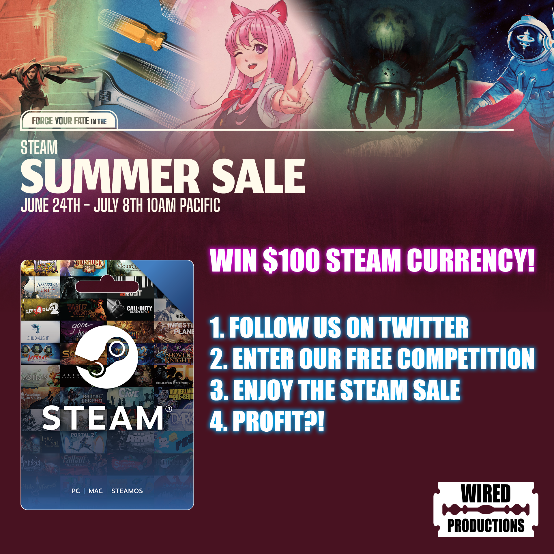 If THAT wasn’t enough – there is also a competition where you can win $100 in Steam credit! Yup, $100 in whatever currency applies to you to get whichever games take your fancy – you can enter by clicking right here! You can also check out a whole loot chest full of incredible indie games in the Wired Publisher Sale!