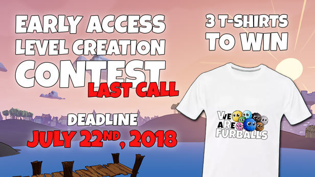 You have until July 22nd, 2018 to join the Early Access Level Creation Contest. If you want to see your awesome level(s) in the game, your name in the Credits, and have a chance to win a "VR Furballs" T-shirt, it's now or never!