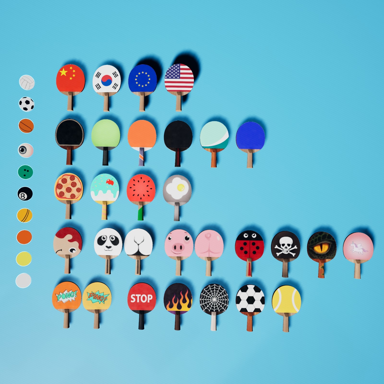 Ahead of the upcoming release of VR Ping Pong Pro we have some brand new images showcasing more of the customisable rackets you'll be able to fine tune your serve with soon!