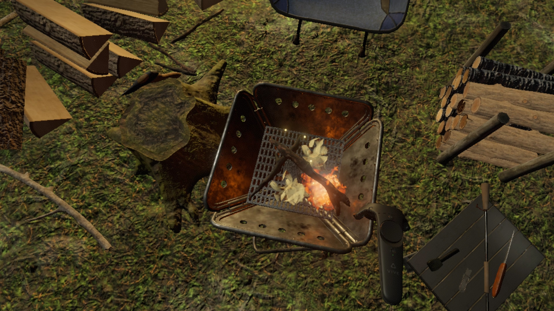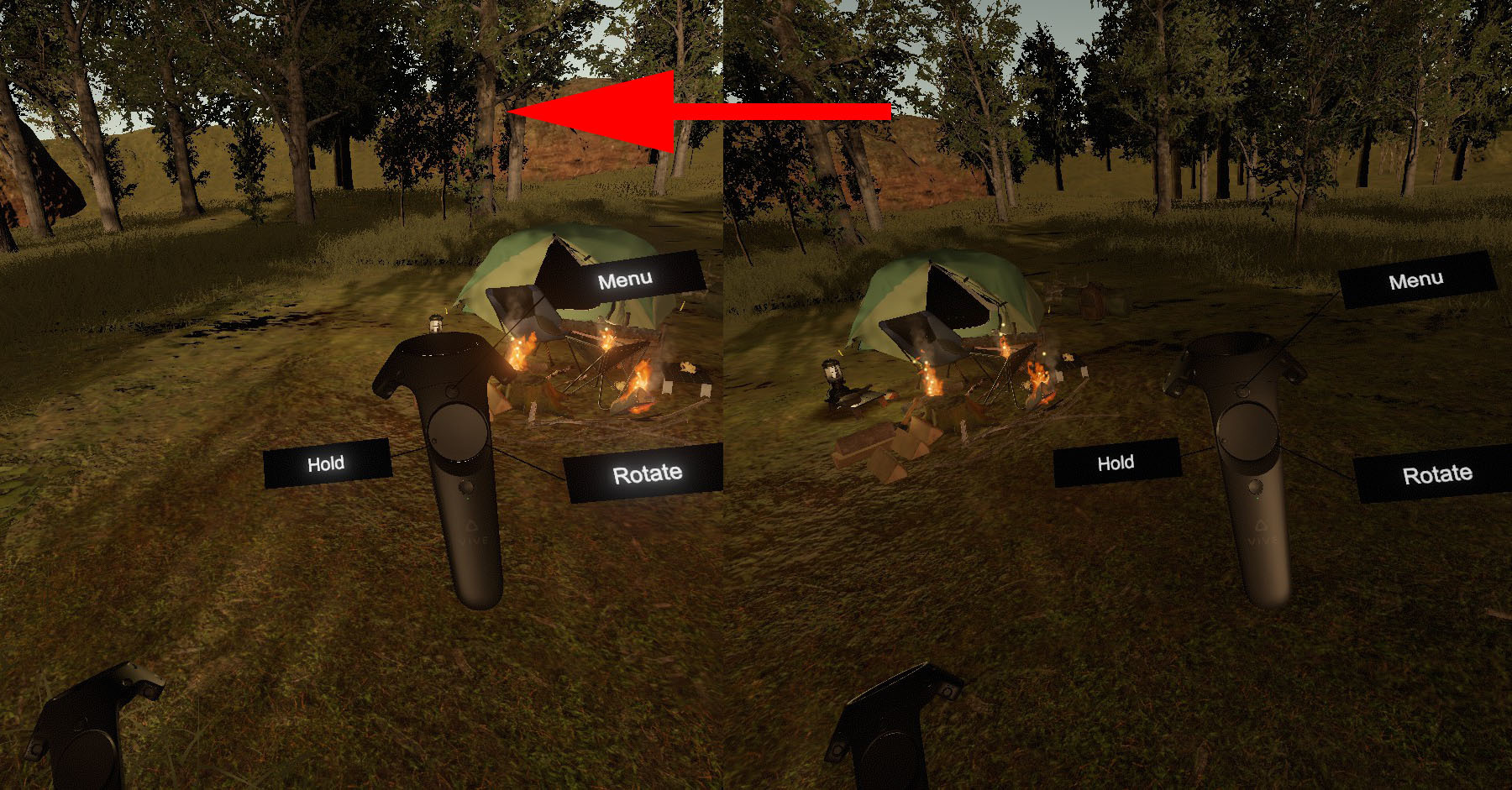 4. "Usability" has been improved by spawning "firewood" around "Bonfire stand" and "branches" under the tree.