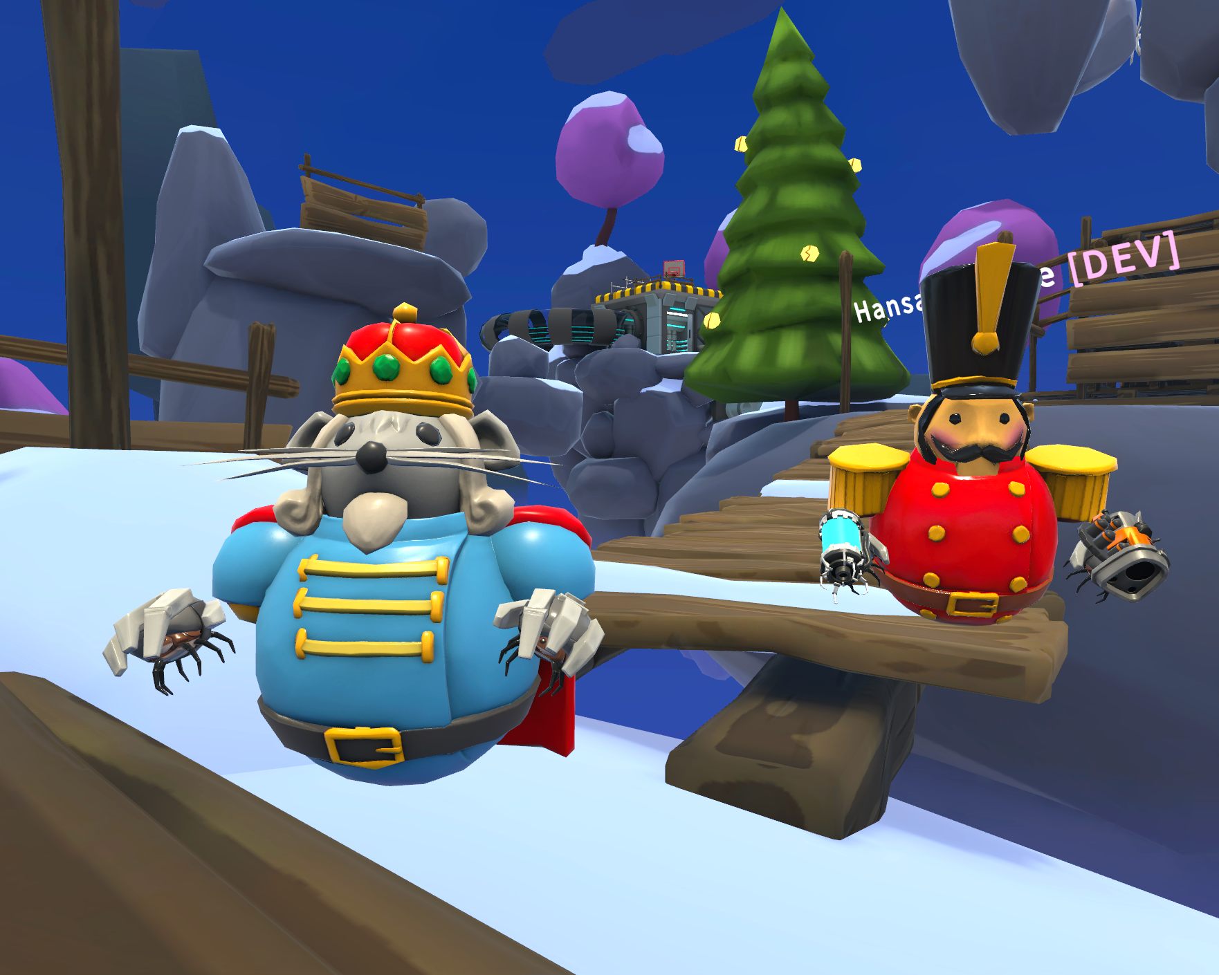 In this update for our VR battle game, we've added a new holiday-themed outfit for players to choose from. This festive outfit is sure to add some holiday cheer to your virtual battles and is perfect for getting into the spirit of the season.