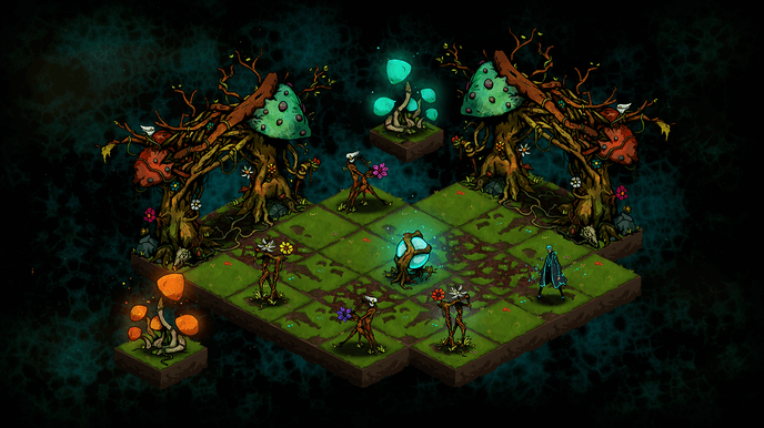 Tearpool: some tiles are covered with a sap-like substance that inflicts a stacking damage and resistance debuff to most allies or enemies. Certain types of plant-like enemies will instead consume the sap on contact and leave a pool of Clear water in its place. Clear water cleanses some of that same debuff’s stacks.