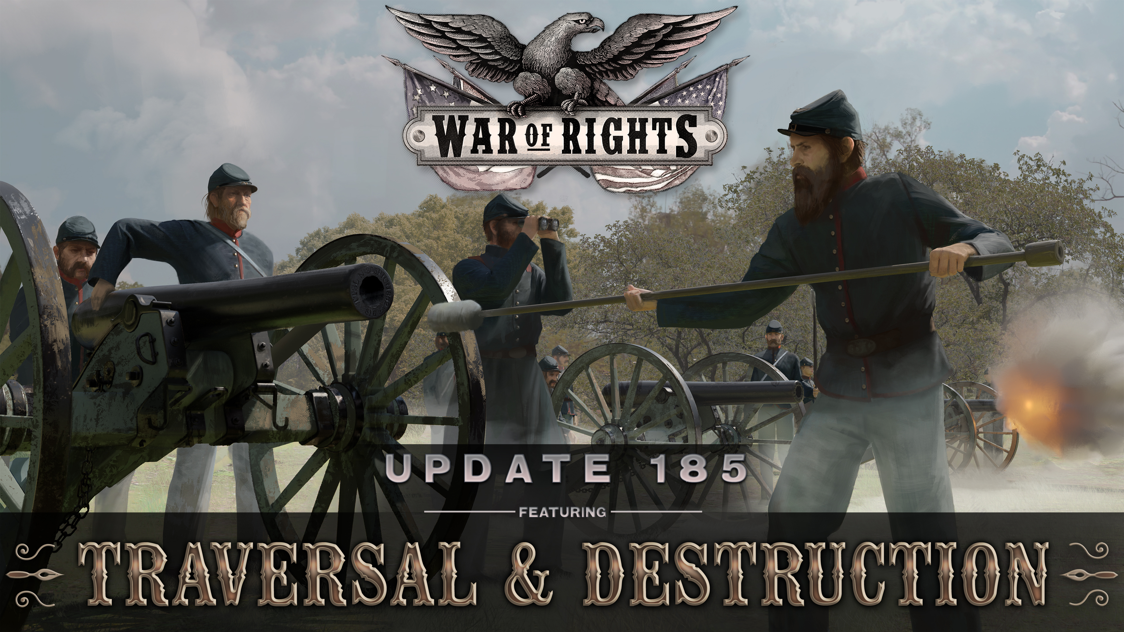 Today we’re pleased to be bringing you update 185: Traversal & Destruction for the War of Rights alpha!