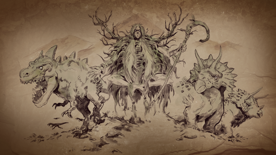 The third and final faction is here! Play as the Vithara tribe led by the wise, old Sage. Amass a pack of dinosaurs and prehistoric beasts to overwhelm opponents with sheer speed and numbers.