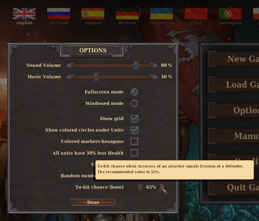 Dear players! I plan to add to the settings the ability to change the "To-hit chance". He is now 55%, but many players complain that units miss too often. Now it can be easily fixed.