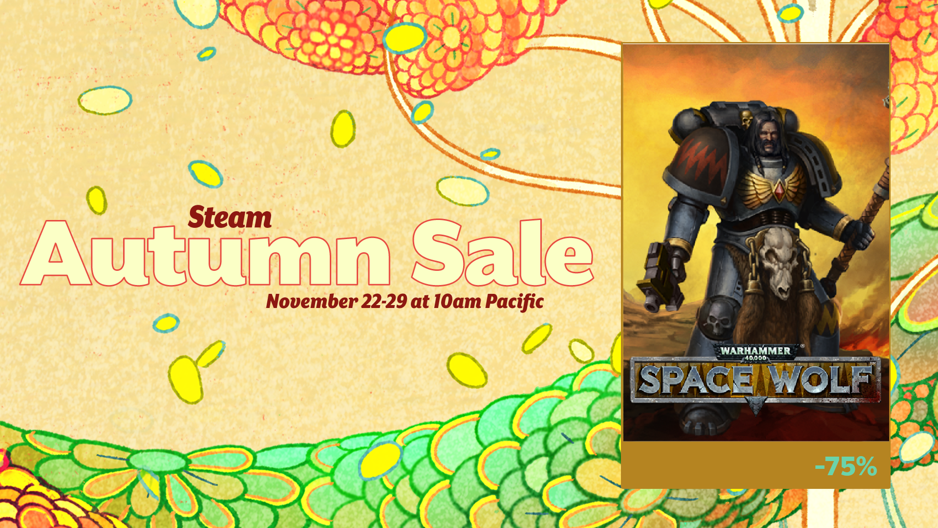 Wolves! It's a good time to reload your Bolters and polish your Power Swords. The Autumn Steam Sale will take place from November 22 to 29, and we call on you to cleanse the heretics.