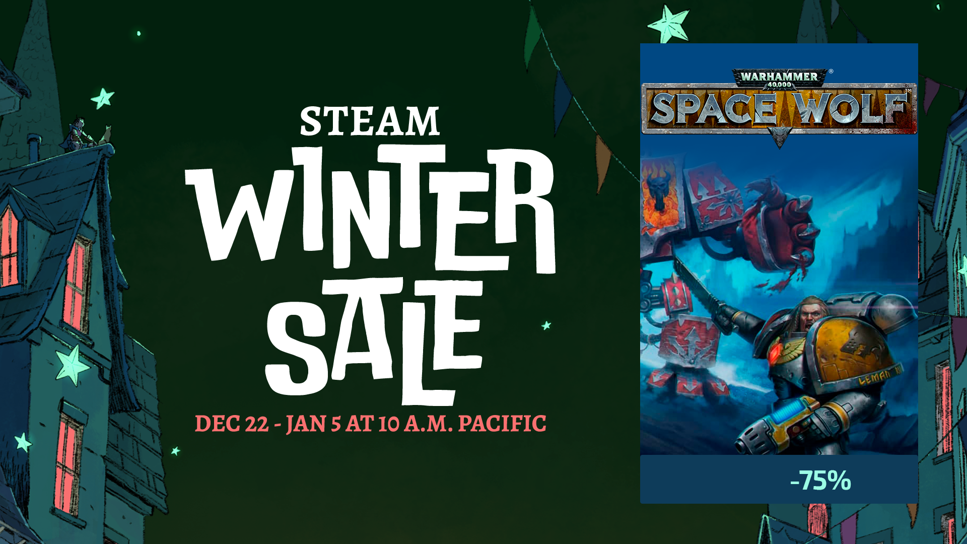 From December 22 to January 5, join the Space Wolves squad with incredible discounts on the game and all DLC during the Steam Winter Sale: