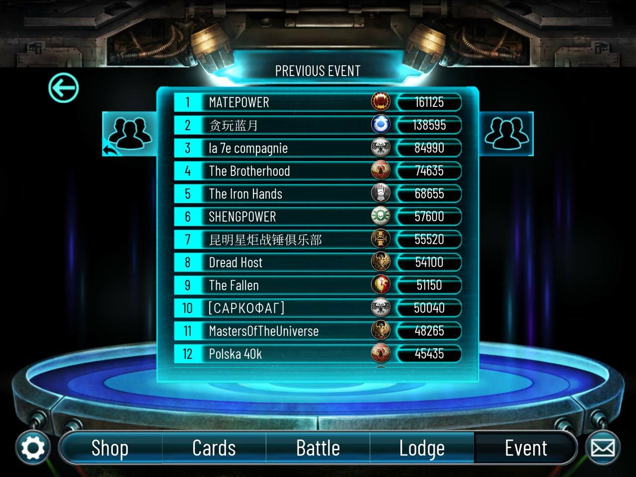 Congratulations to the top lodges in the event! A new cosmetic Sons of Horus card back joins the game! Don't forget to claim your rewards!