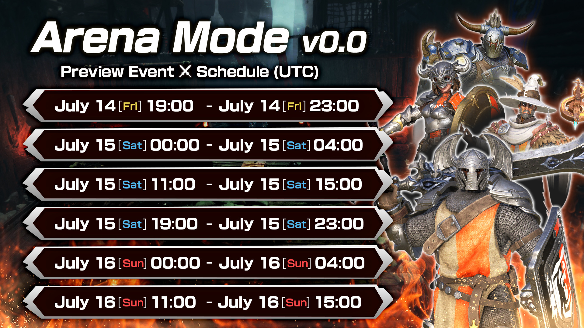 Jump into the Arena Mode Preview again this weekend! See the included image for playtimes.