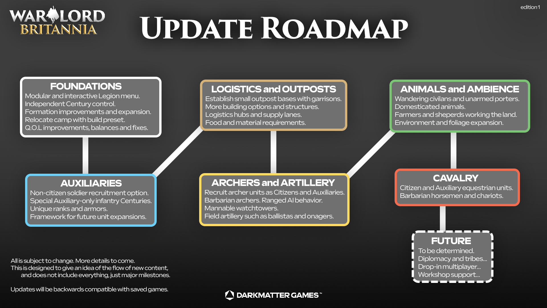 For quick reference, here is the Roadmap. Warlord Britannia is now heading towards the Auxiliaries update!