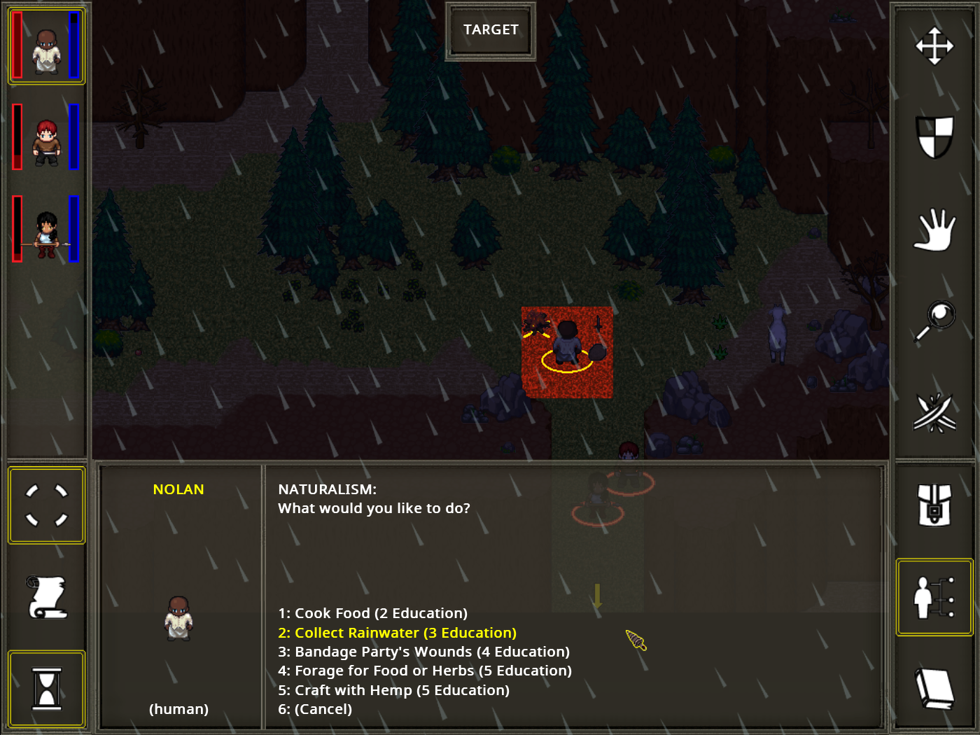 I replaced the "Examine Surroundings" option in the Naturalism ability with "Collect Rainwater" (much more useful). Examine Surroundings did pretty much nothing. Also much better door collision AI and other stuff.