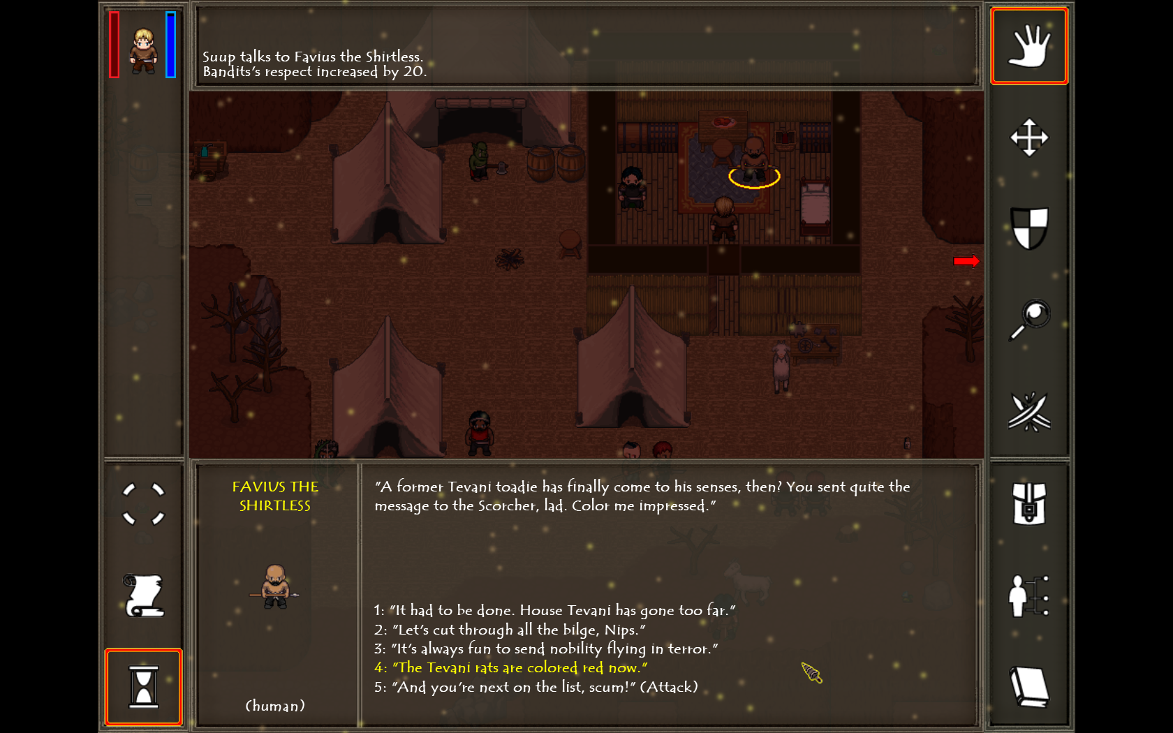 -Main objective is no longer failed if militia becomes hostile at beginning of Ch.1 (Ralo escapes). -Basillo is now neutral in Ch.1, so you can travel by caravan without faction respect. -Favius the Shirtless now has different dialogue in Ch.1 if militia is hostile. -New reputation in Ch.4 for killing all four warlords: Warlord Butcher. -Improved lots of other dialogue and scripts in Ch.1. -Updated Builder's Manual.