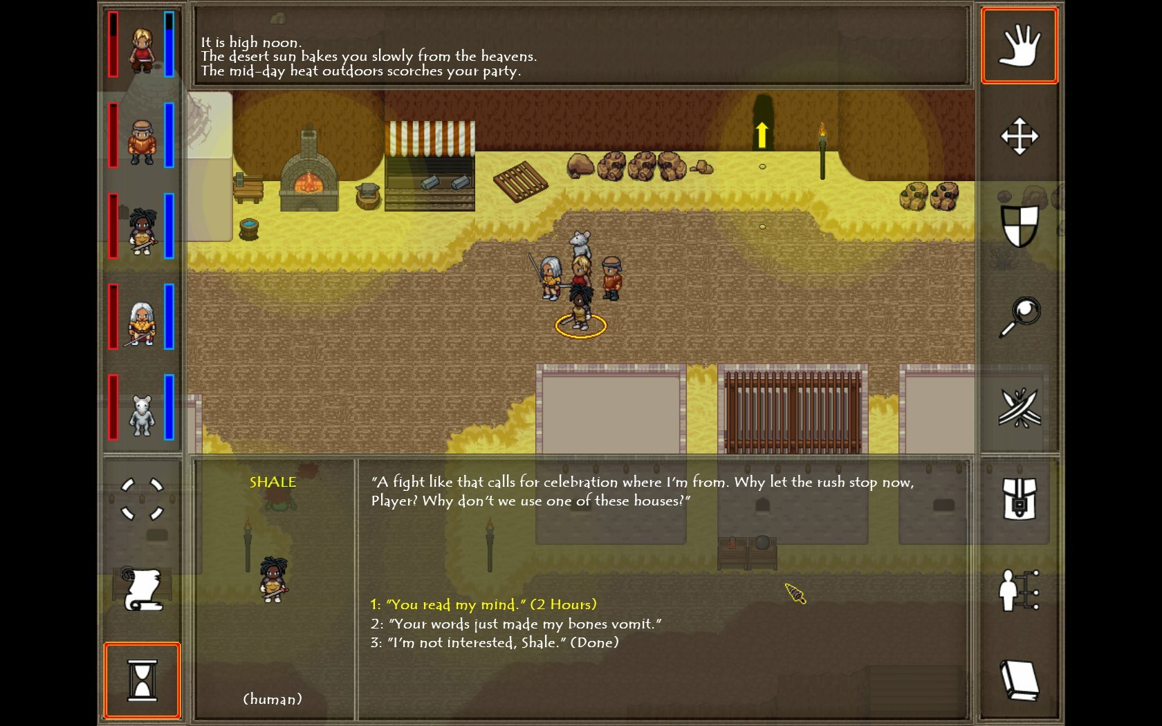 -Finished Milphio dialogue and side quest. -Added 5 obelisks to Ch.4 that you can translate with Linguistics for skill points. -Decreased Hellani's rates in Ch.2, added her to Ugliest Pony Inn in Ch.4 (plus quest dialogue). -Fangworms now regenerate health and spawn sandscourges when killed, sandscourges no longer poison. -Dust and smoke clouds no longer blind desert reptiles, trogs, or burrowing monsters. -Improved effect sprites for Boil Blood, Freeze Blood, and Brain Freeze spells. -Fixed attacking ground command (targets nearby hostiles automatically). -Updated manuals (added bookmarks and table of contents).
