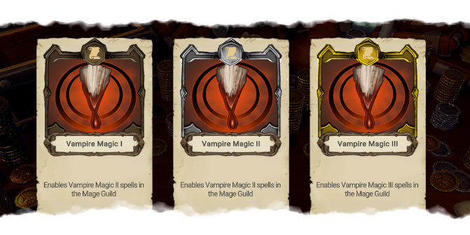 The Vampire Magic card brings a dark, powerful edge to your spellcasting in the Mage Guild. Naturally you only need the one card, as it's an upgrade. These cards will only ever drop once you have the Mage Guild unlocked. It consists of three potent spells.