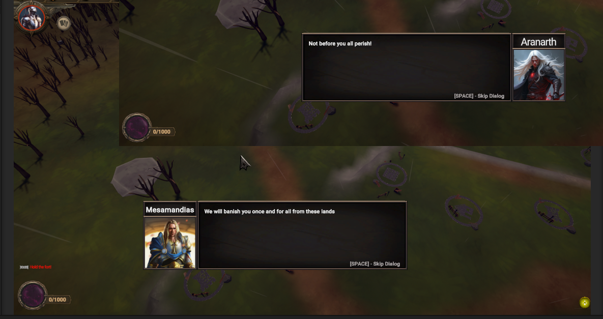 If you did check it out, you'll have noticed that you can also add dialogues to the game. You can play these at any point you like, for example when the player's building is destroyed, after a certain time, when an enemy spawns etc...