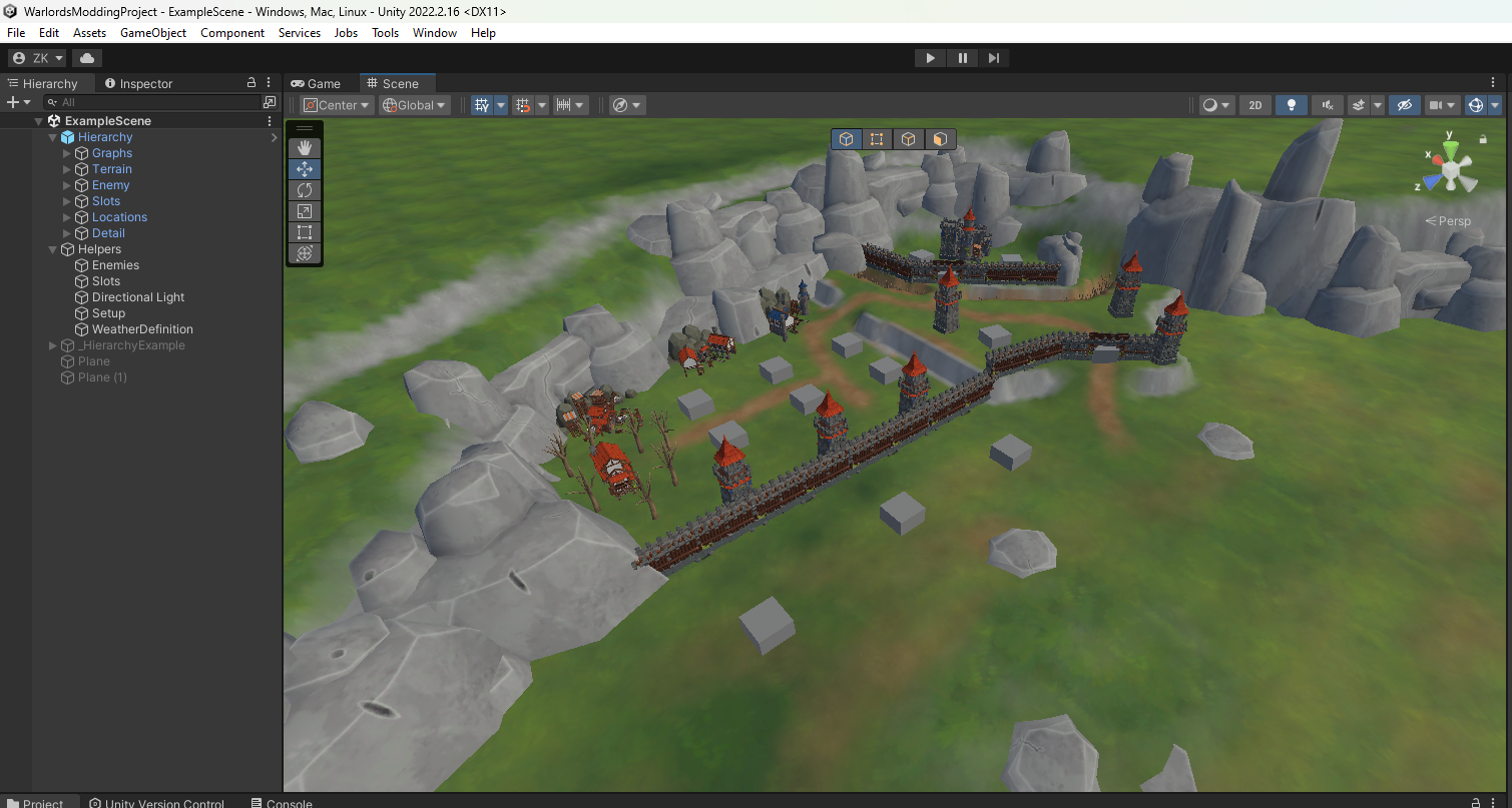 The biggest and most important feature of the project is creating new maps. Users will be able to drag and drop buildings on their new level, which represent locations where building slots will appear. We added in proper models there so you'll see roughly how much space the buildings will take. That way you can easily create wall sections, tower placements and what not. Obviously you have Unity Terrain tools at your disposal, so you can use them as you wish. You can also mark slots to be ignored by enemies, so unless they're in their direct line of fire, they won't engage with them (tower defence game, anyone?)