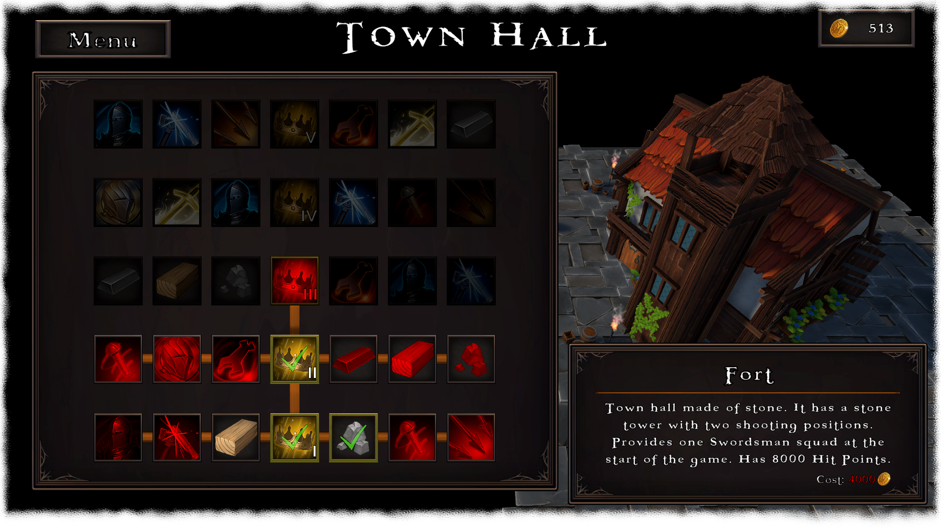 One of the things we felt WUS was missing, is a flat progression system - something that you purchase once and stays with you for the rest of the game. As a result, we added Townhall Progression which you can think of as a technology tree.