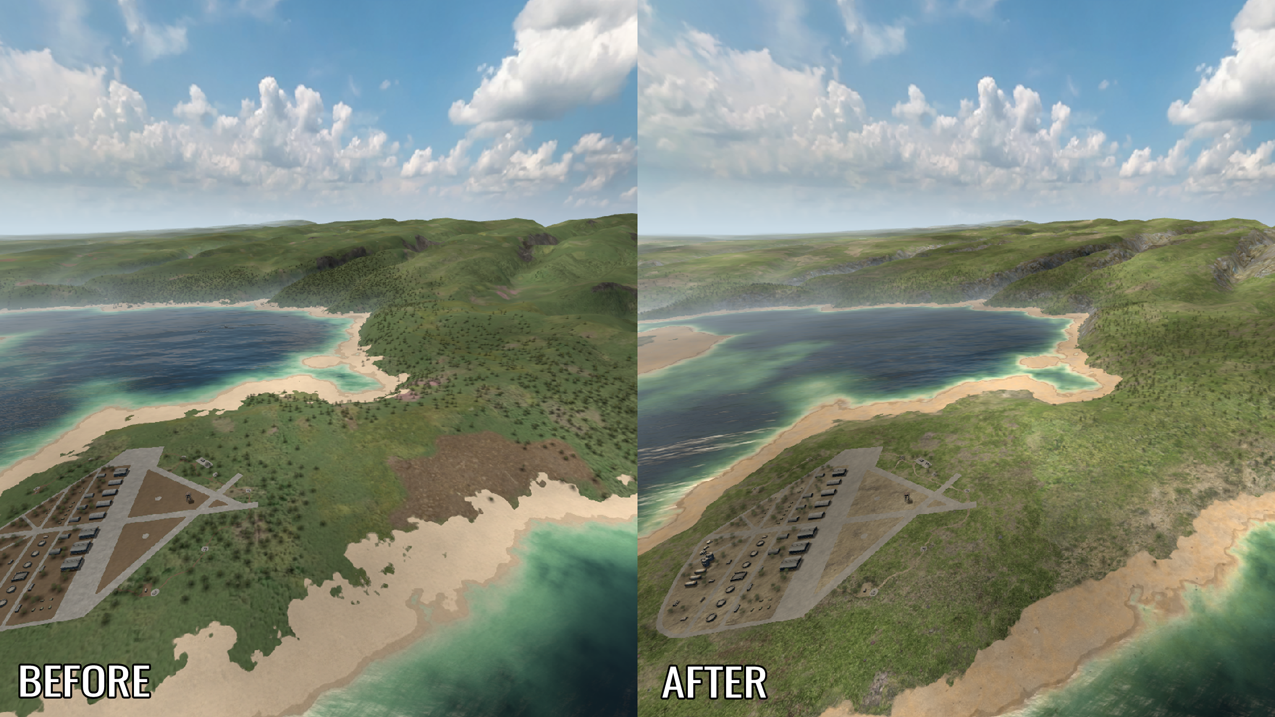 First major Warplanes: Battles over Pacific update brings better, more natural looking ground details with 25% increased resolution without affecting the performance. Terrain should now look more organic, and transitions are more smooth.